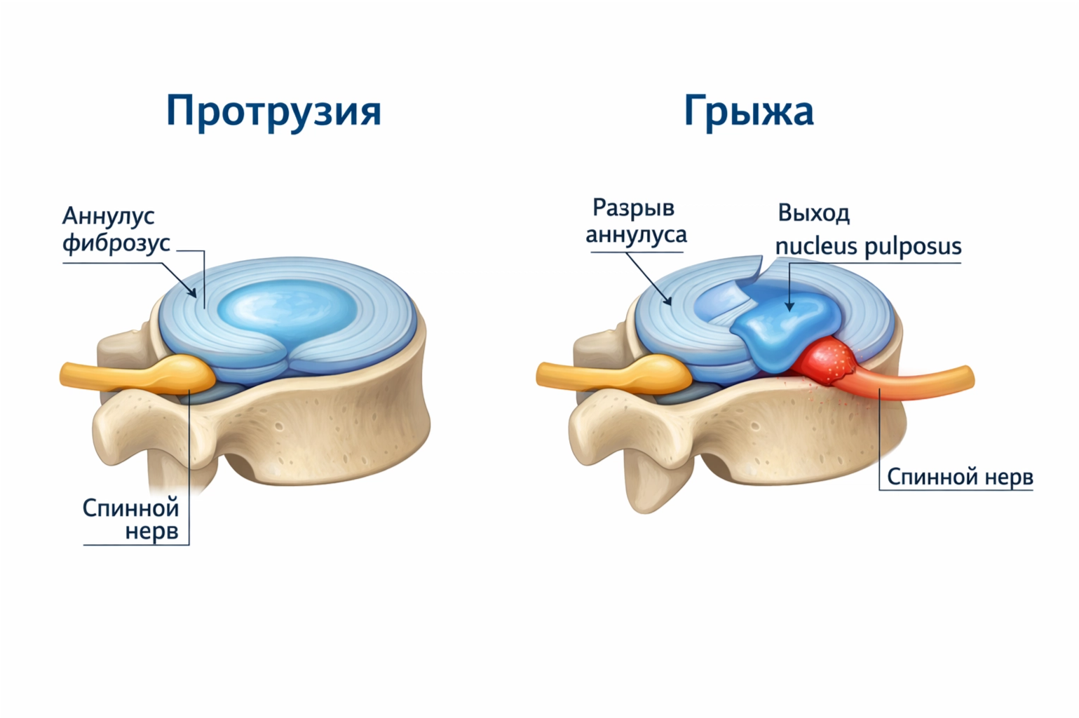Визуальное сравнение: Протрузия vs Грыжа